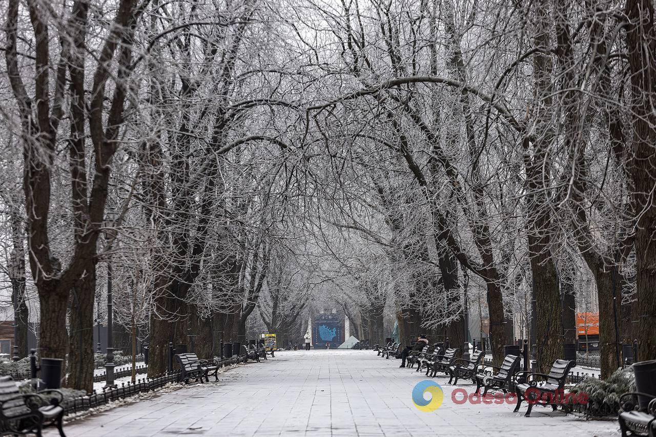 Щоправда, цей же мороз прикрасив снігом, льодом і інеєм одеські вулиці та пляжі.
