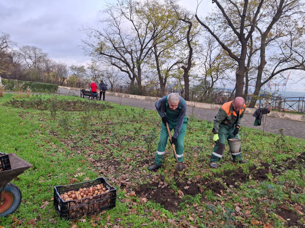 Тюльпанові візерунки з’являться й на території біля Одеської обласної військової адміністрації на проспекті Шевченка: там висадили близько 3 000 цибулин. Роботи з озеленення тривають і в інших зелених зонах Одеси. Лише в парку Шевченка вже висаджено 10 200 цибулин тюльпанів.