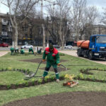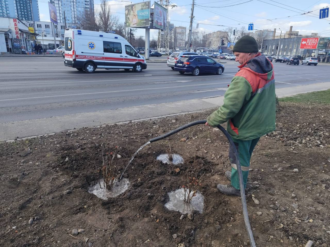 Крім того, тривають весняні роботи з благоустрою. Працівники підприємства щодня очищають газони, підмітають доріжки, наводять лад на дитячих і спортивних майданчиках, розпушують ґрунт, ремонтують і фарбують садові меблі, підрізають троянди, дерева і кущі, а також поливають молоді дерева.