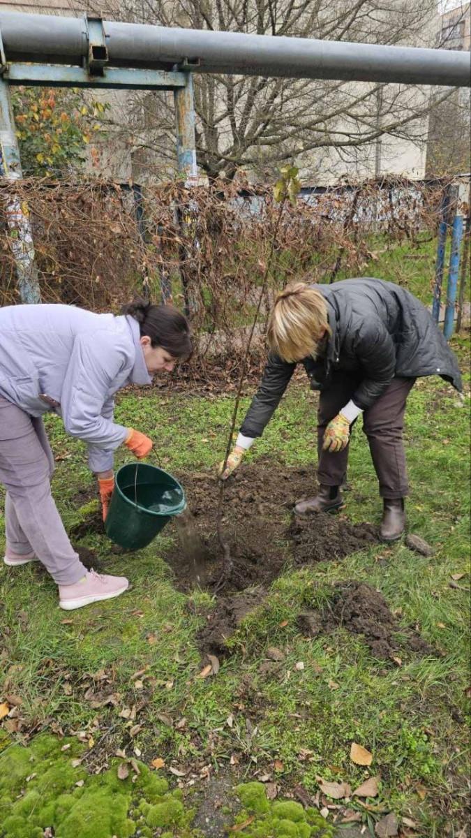 У п’ятницю, 8 листопада, одеські освітяни провели акцію з висадки зелених насаджень на вшанування полеглих захисників України. Вони висадили молоді дерева та кущі біля закладів освіти по всьому місту.