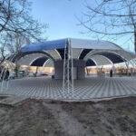 Окремі роботи змінили зовнішній вигляд комплексу. Покриття виконали тентом спеціальної ярусності, який захищає від опадів і прямих сонячних променів. Зону видачі води облаштували чотирма кранами та оздобили декоративною плиткою. Підходи до бюветного комплексу забезпечили освітленням у темну пору доби та вклали нове плиткове покриття, зокрема з тактильною плиткою.
