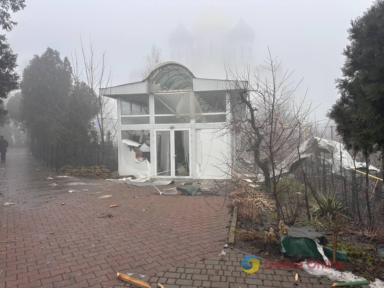 В результате попаданий возникли разрушения с последующим возгоранием здания на территории Свято-Успенского мужского монастыря. Повреждения получили складские и административные здания, а также автомобили.