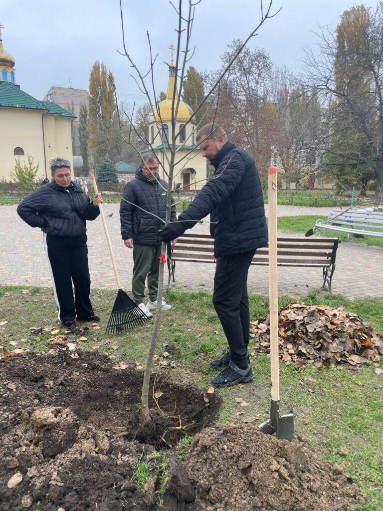 В пятницу, 8 ноября, одесские педагоги провели акцию по высадке зеленых насаждений в честь павших защитников Украины. Они высадили молодые деревья и кустарники у учреждений образования по всему городу.