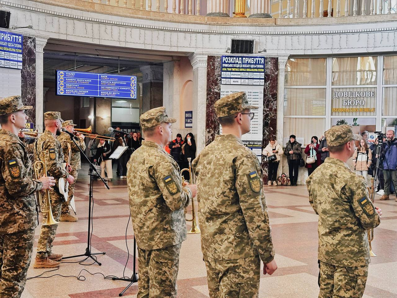 14 марта в главном холле железнодорожного вокзала станции «Одесса-Главная» состоялось выступление военного оркестра командования «Юг», которое приурочили ко Дню украинского добровольца.