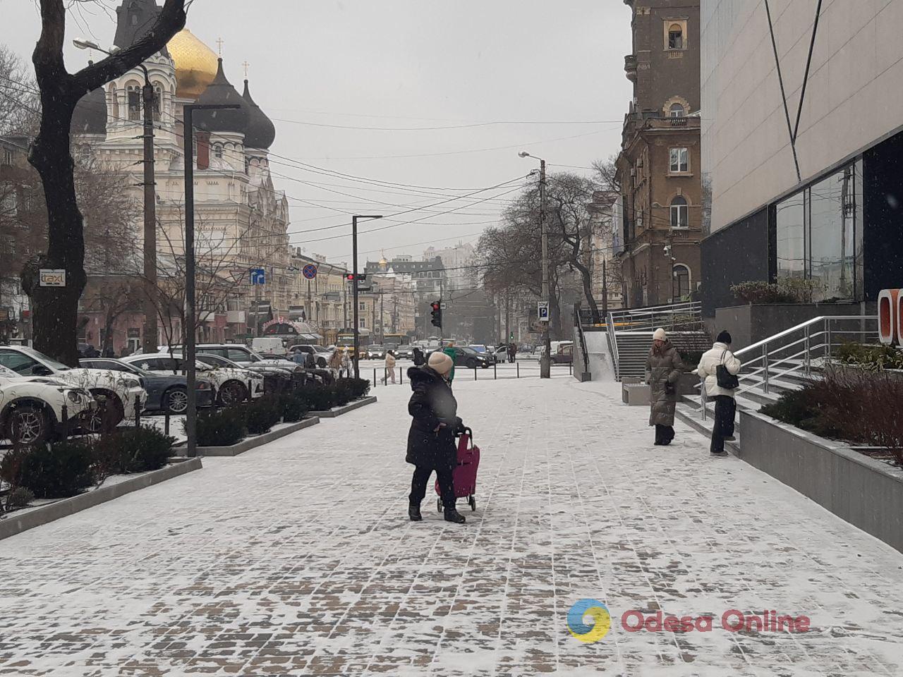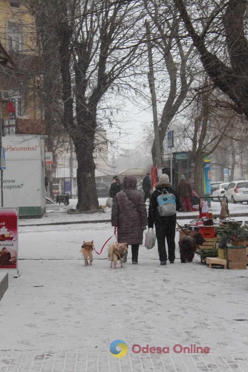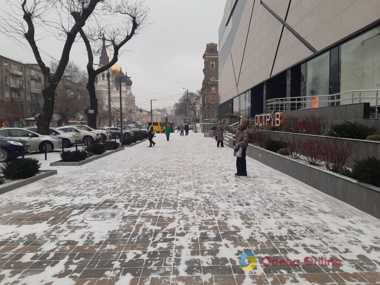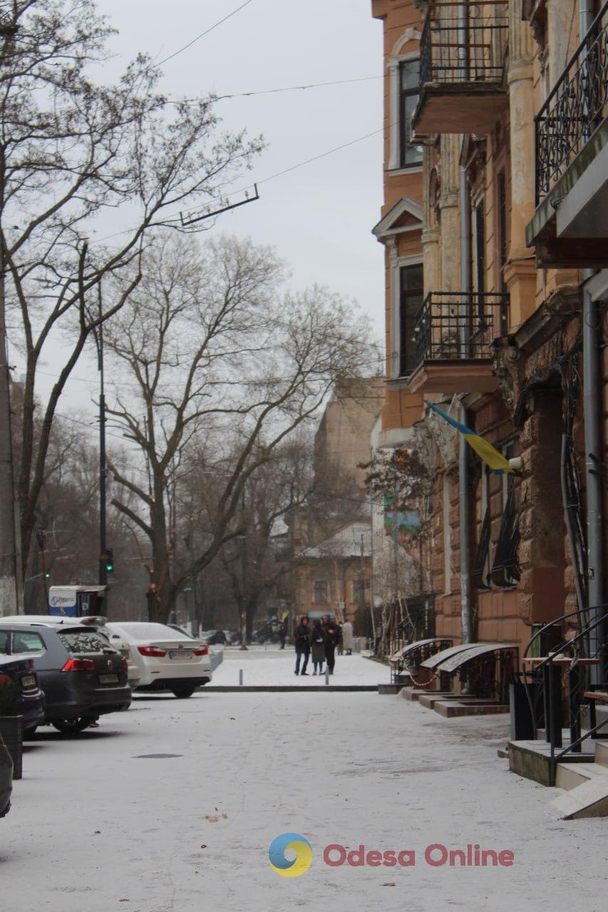 26 декабря в Одессе пошел первый снег этой зимы — легкие снежинки появились над городом и уже легли тонким слоем на крышах, машинах и тротуарах.