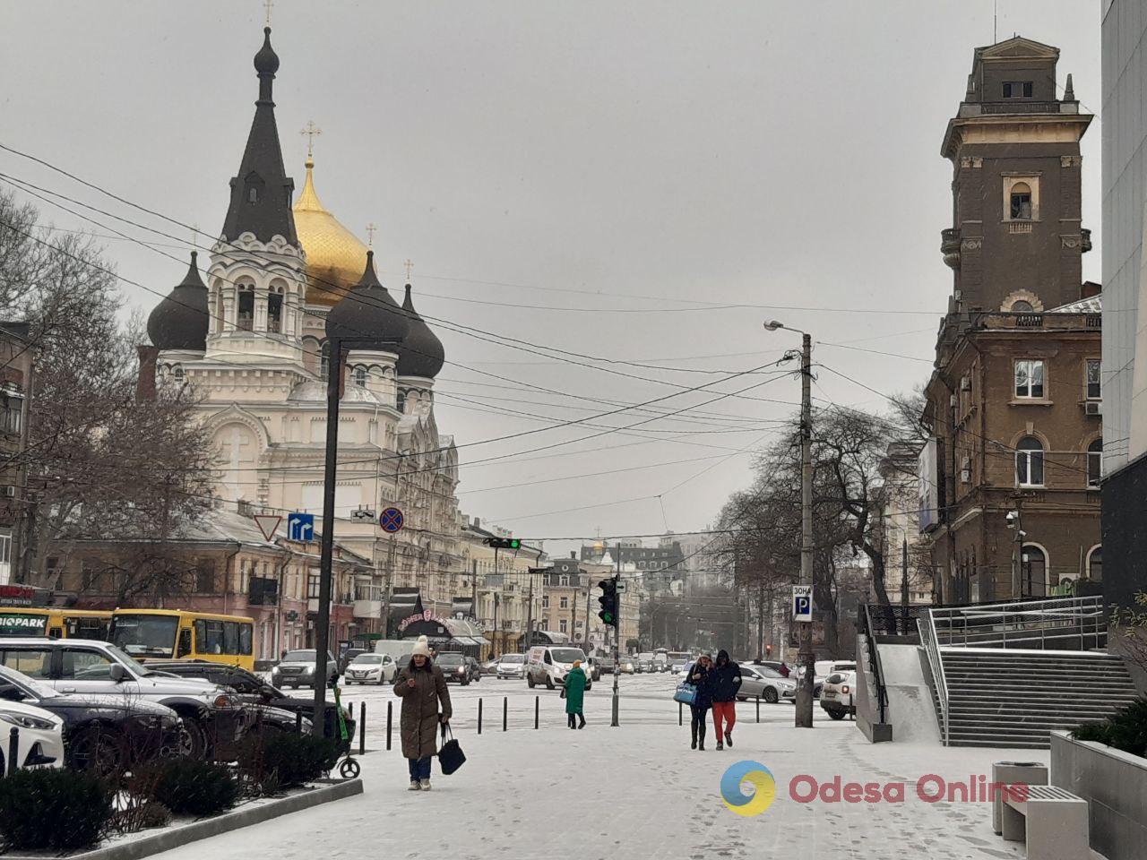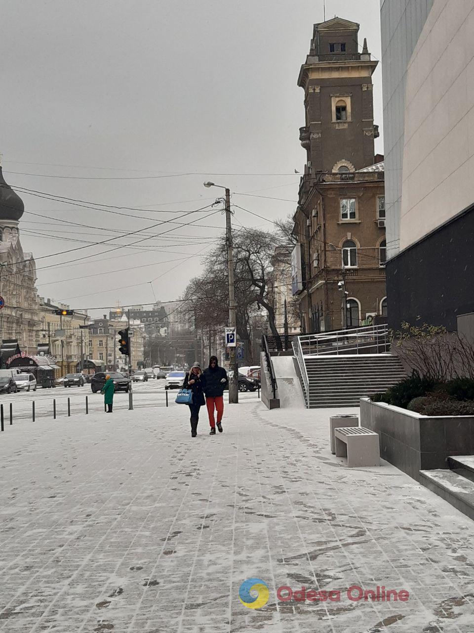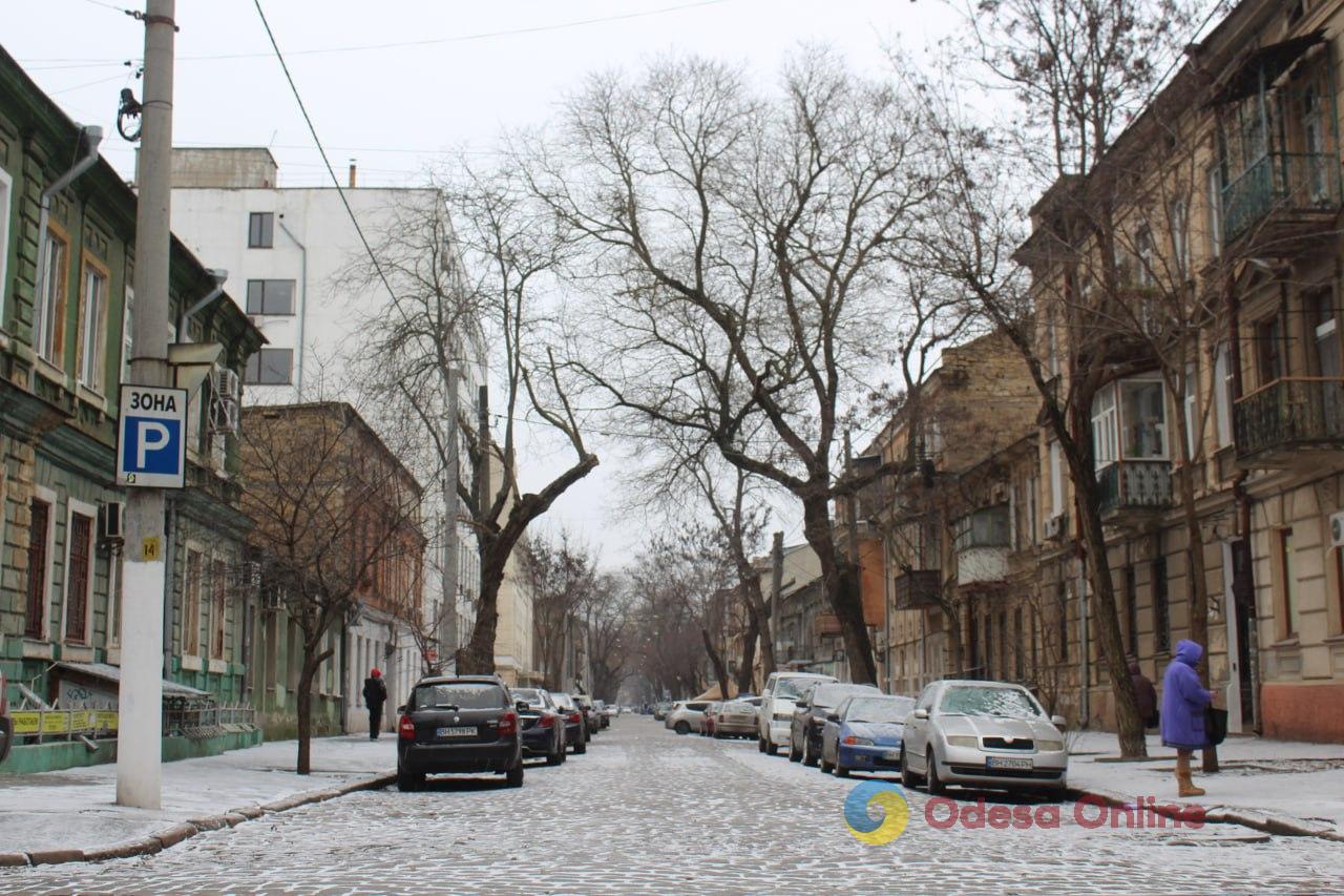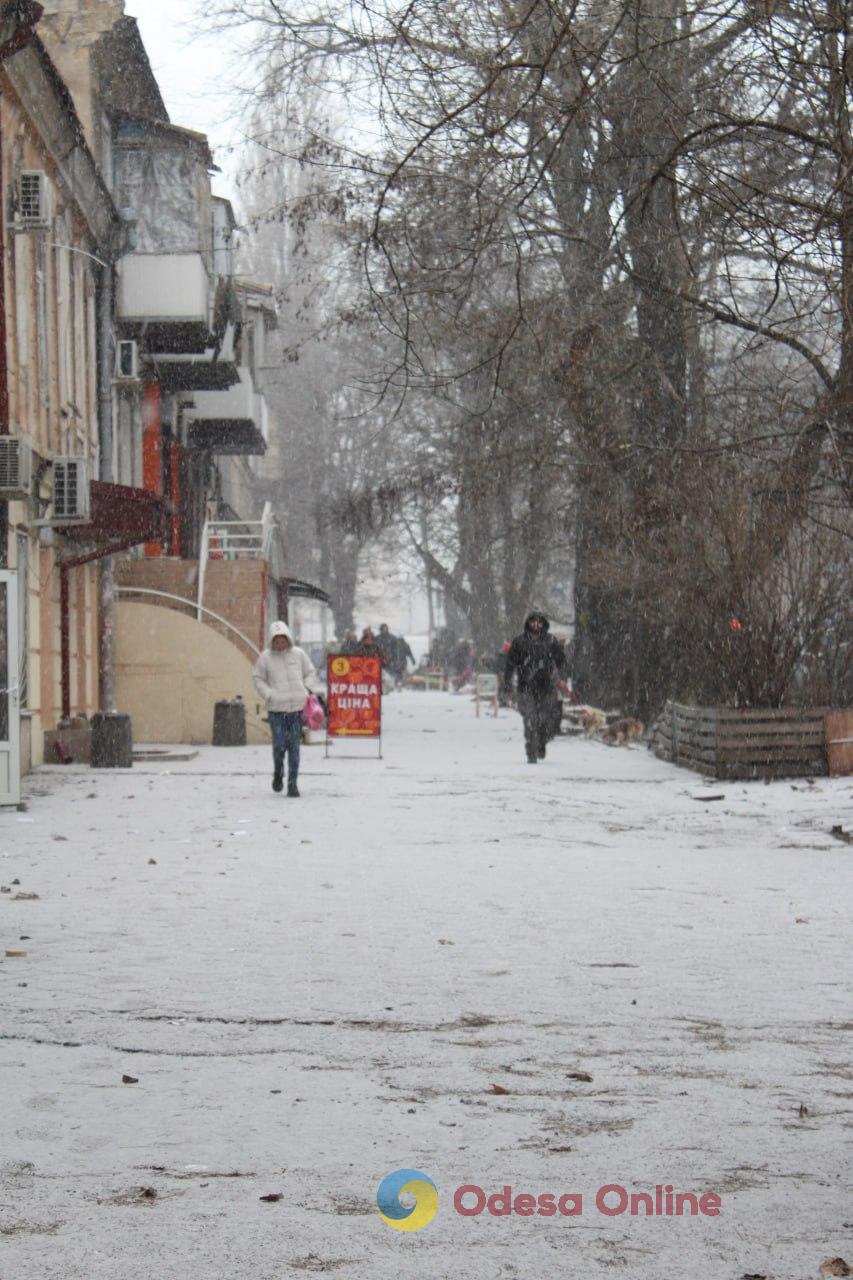 26 декабря в Одессе пошел первый снег этой зимы — легкие снежинки появились над городом и уже легли тонким слоем на крышах, машинах и тротуарах.