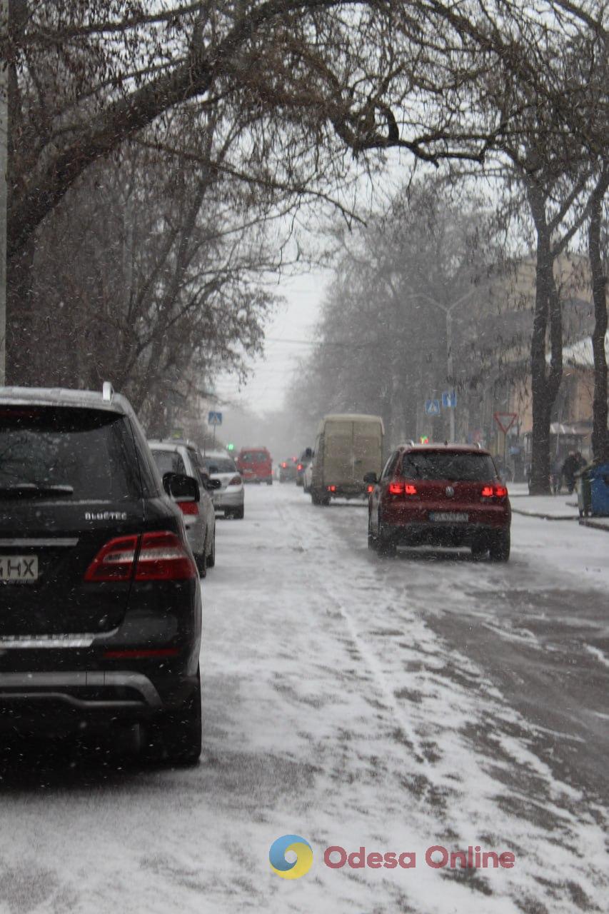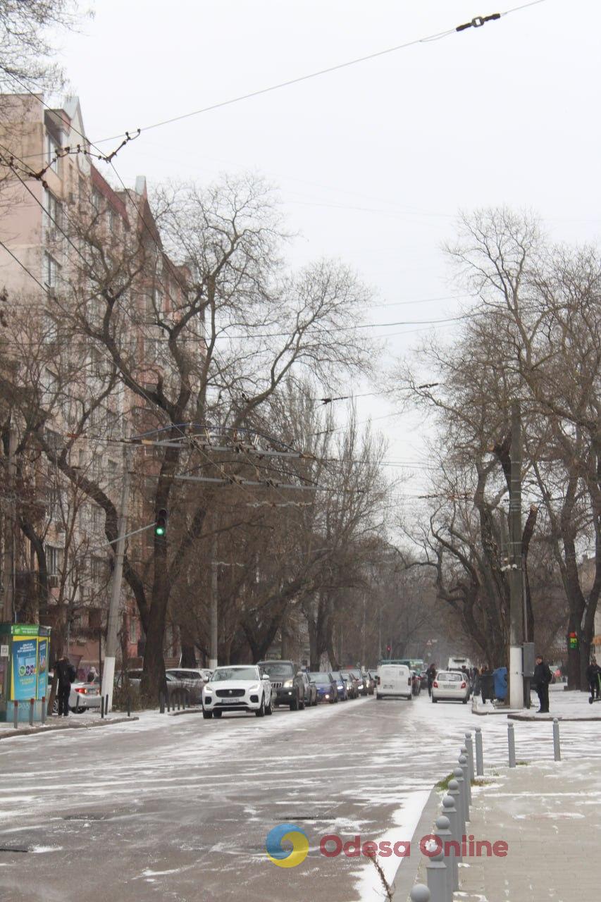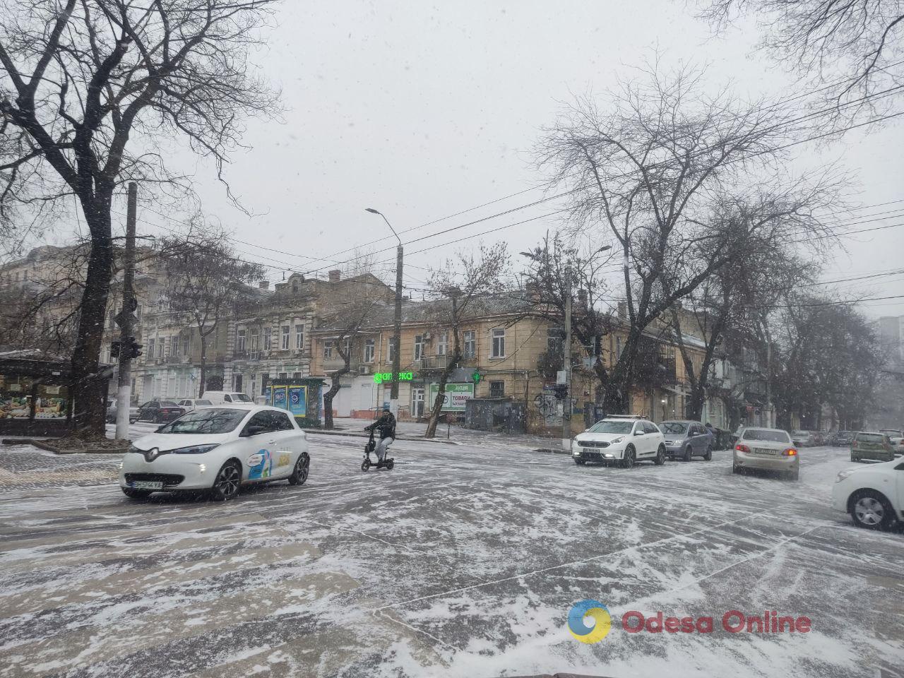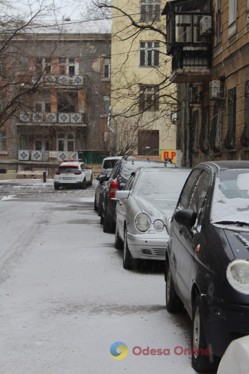 26 декабря в Одессе пошел первый снег этой зимы — легкие снежинки появились над городом и уже легли тонким слоем на крышах, машинах и тротуарах.