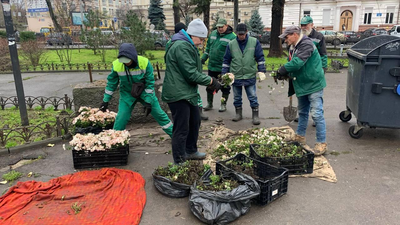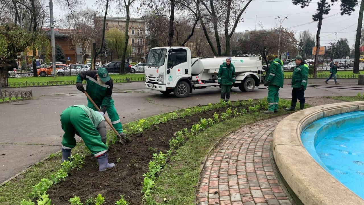 Озеленители КП «Міськзелентрест» вместе с работниками Одесской железной дороги обновили клумбы у железнодорожного вокзала.