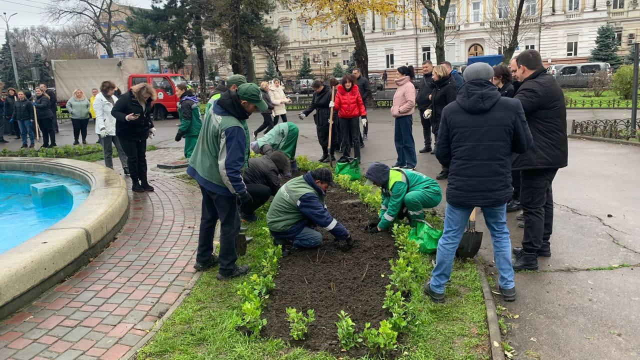 В Одессе в сквере «Роза ветров» высадили сотни кустов роз, бересклета и хризантем