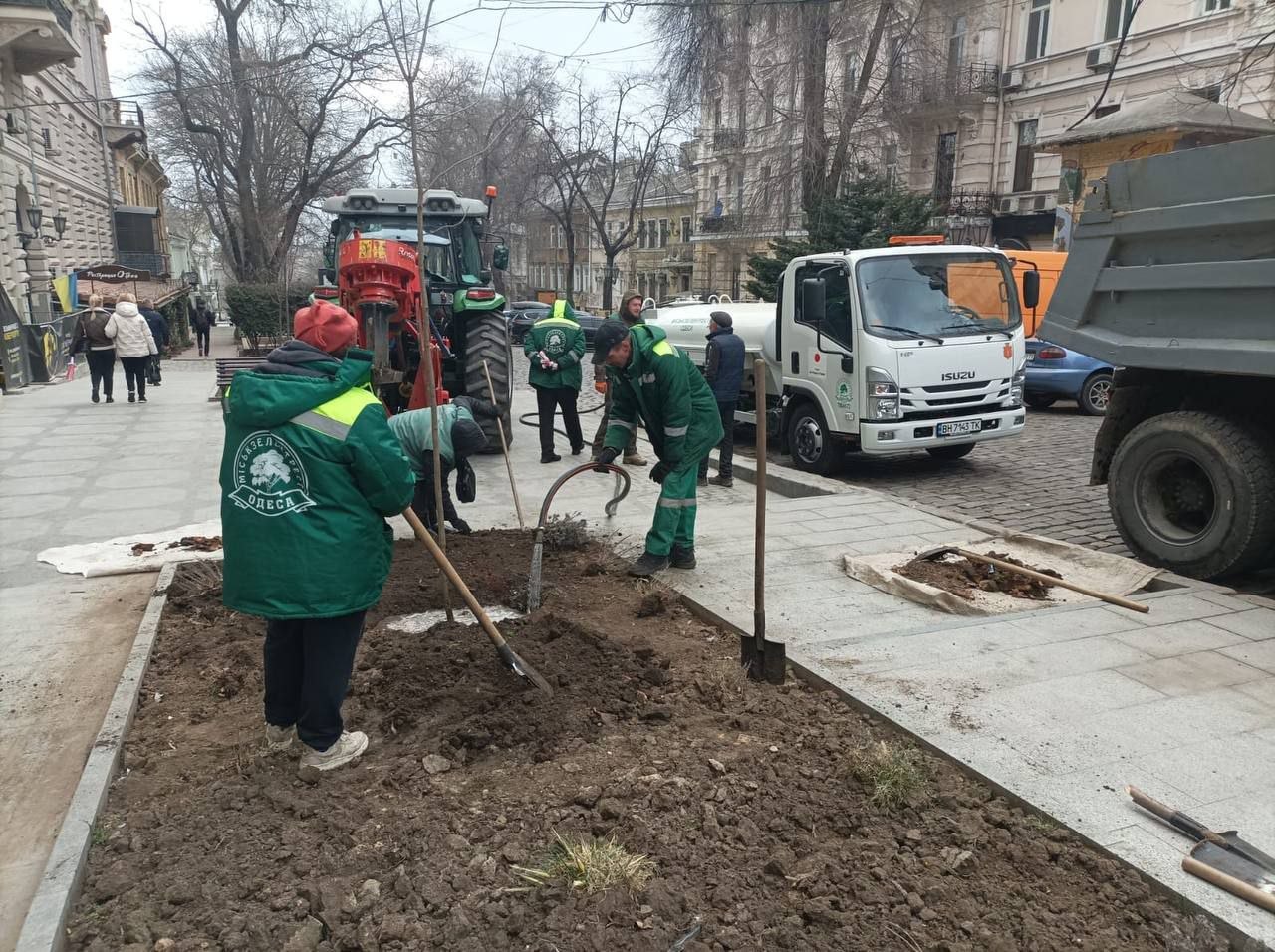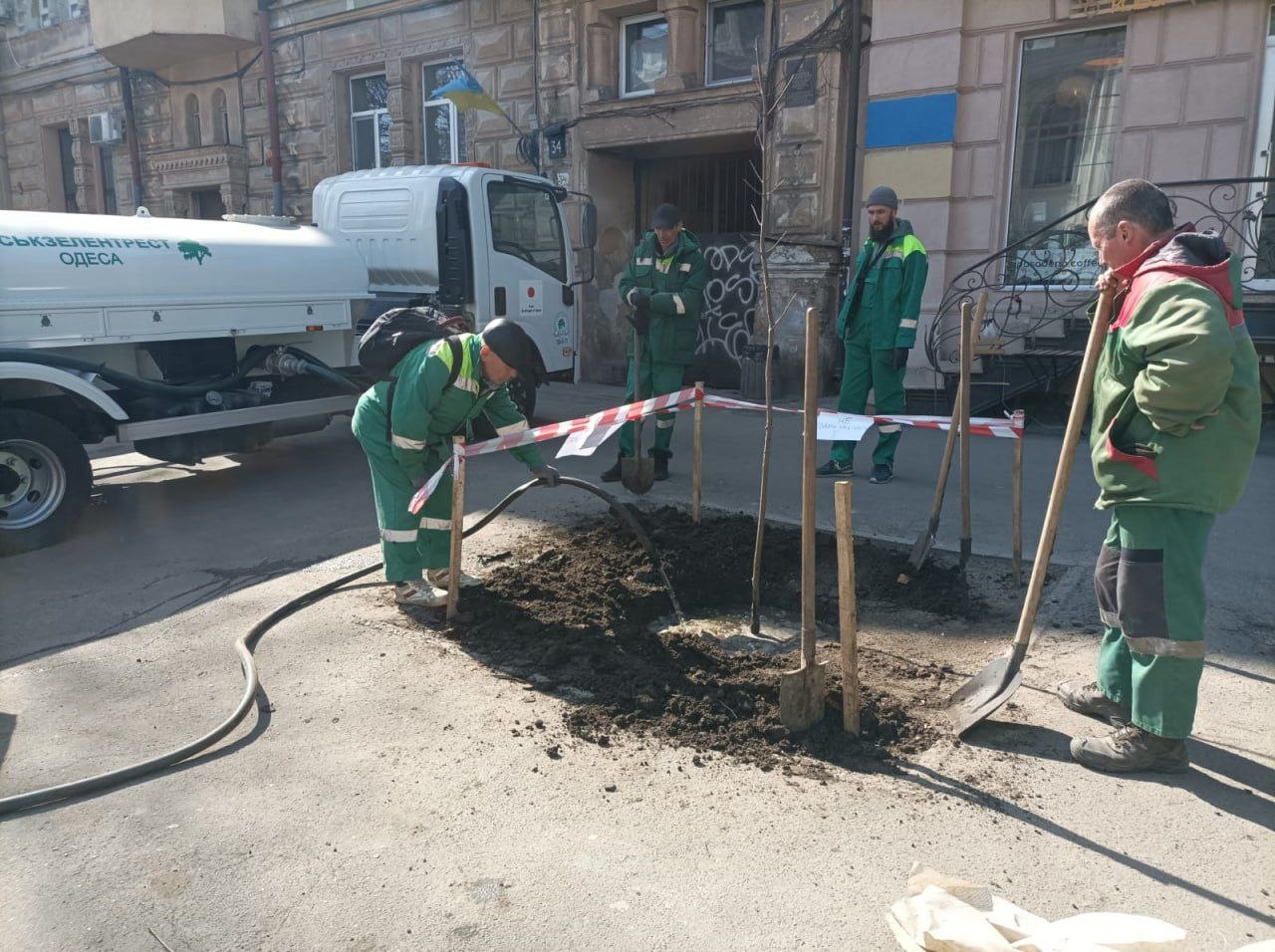 26 деревьев высадили на территории Мемориала героической обороны Одессы — 411-й батареи. Еще 13 деревьев озеленители высадили на местах выкорчеванных пней на улицах Европейской, Ришельевской, Пастера и на Соборной площади. Среди новых насаждений — катальпа, платан, ясень и клен.