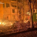 Огонь охватил деревянные домики, расположенное рядом четырехэтажное здание частично разрушено. Также атака повредила гражданский транспорт.