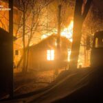 Огонь охватил деревянные домики.