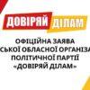 Партія «Довіряй ділам» офіційно спростувала свою причетність до масових зібрань під час воєнного стану 18.07.24 війна війна в Україні Новини Одеса Новини Одещина офіційне звернення партія "Довіряй ділам" Чорноморськ