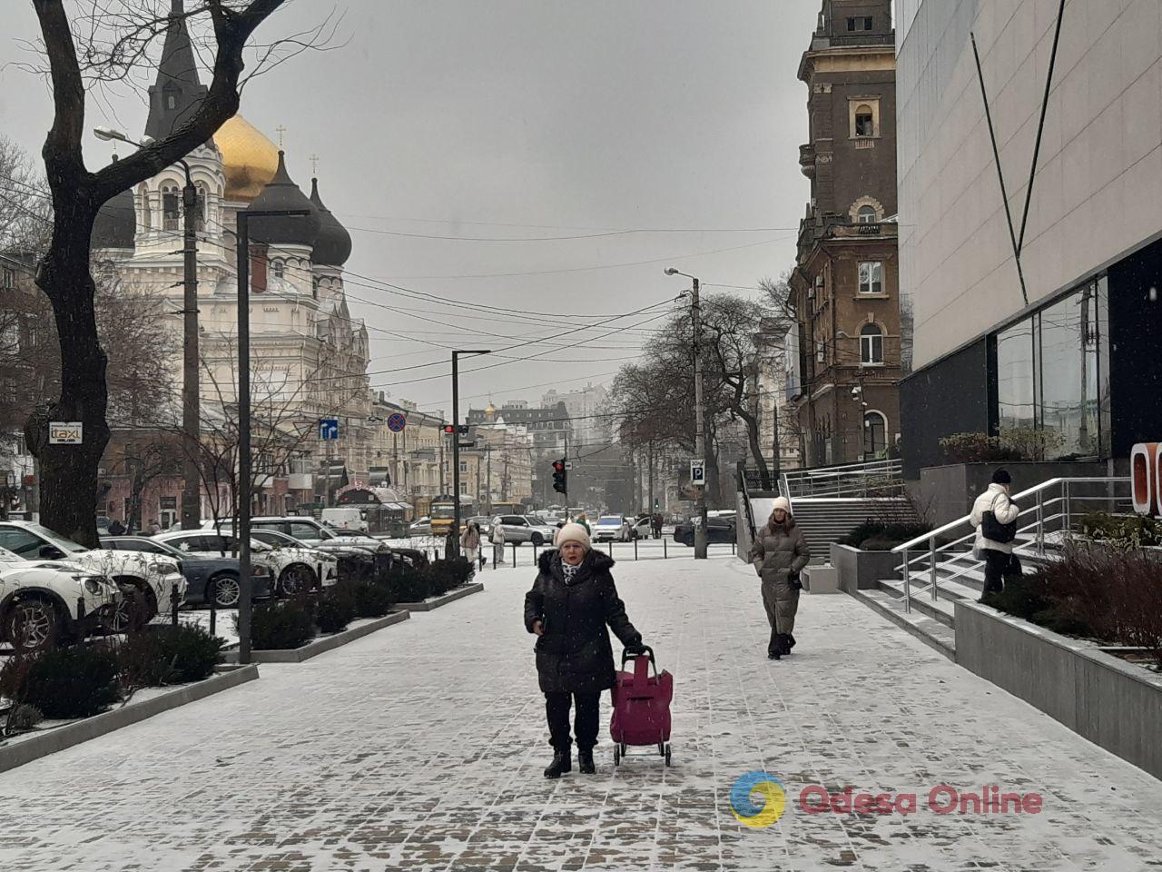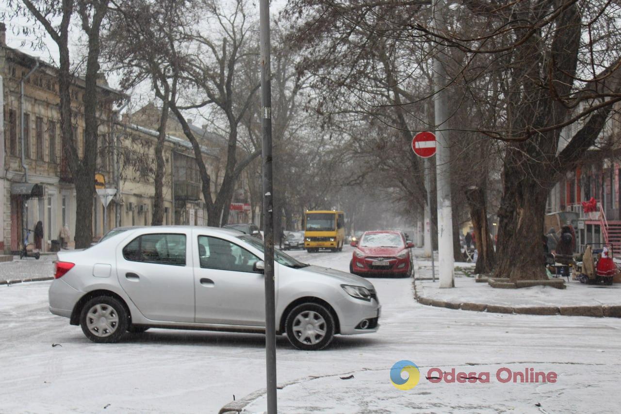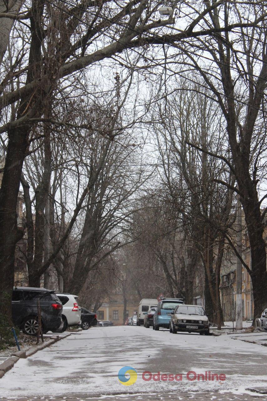 26 грудня в Одесі пішов перший сніг цієї зими — легкі сніжинки з’явилися над містом і вже взялися тонким шаром на дахах, автівках та тротуарах.