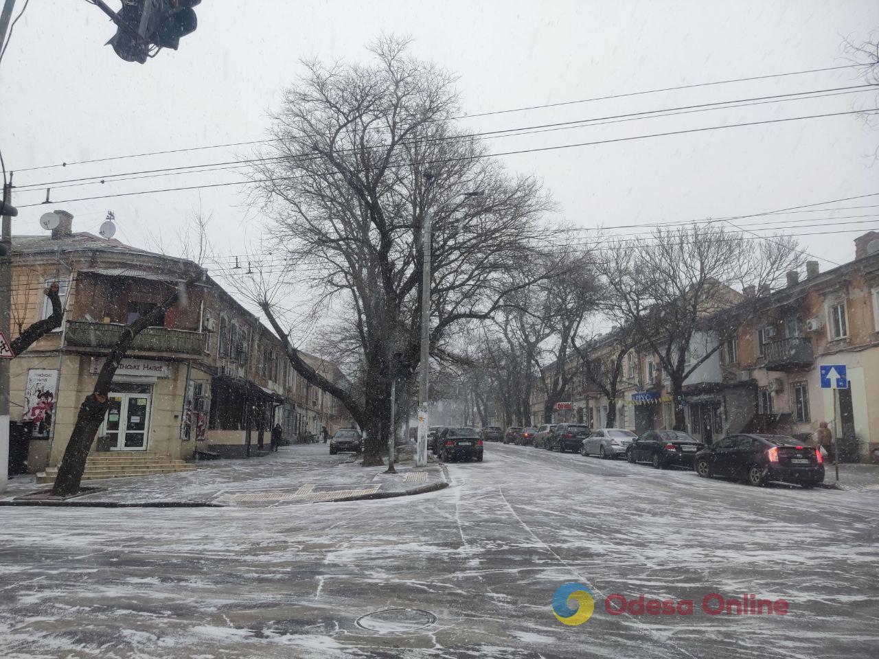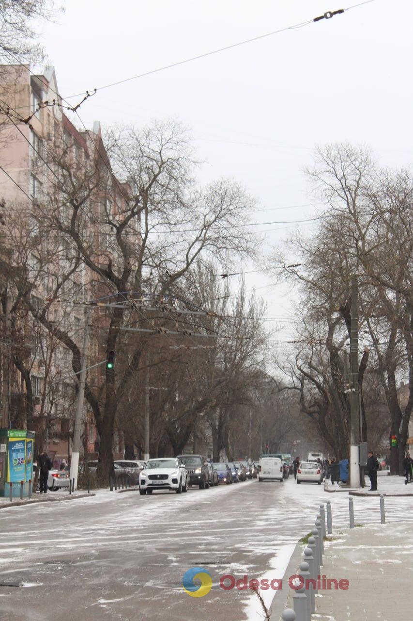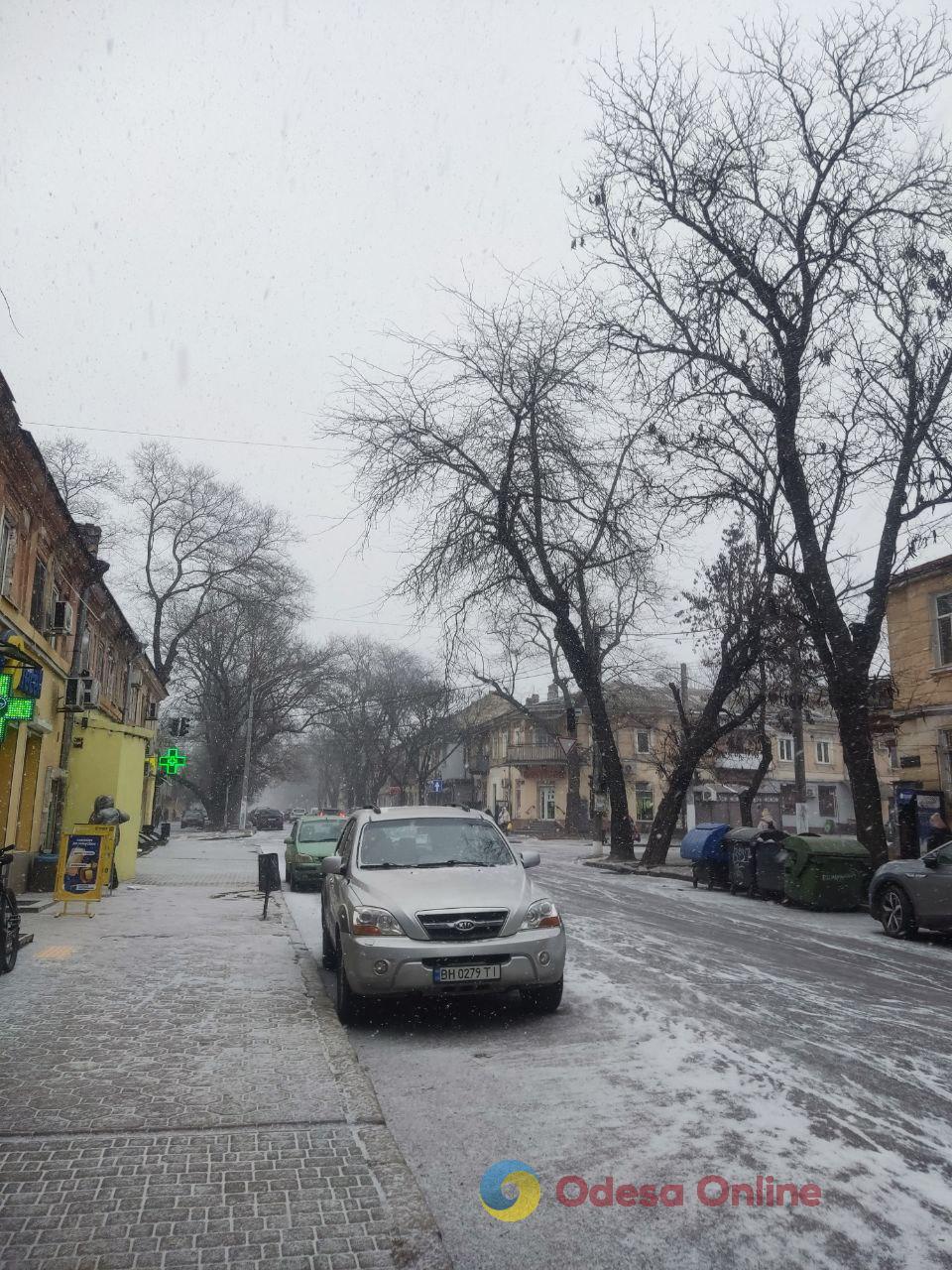 26 грудня в Одесі пішов перший сніг цієї зими — легкі сніжинки з’явилися над містом і вже взялися тонким шаром на дахах, автівках та тротуарах.
