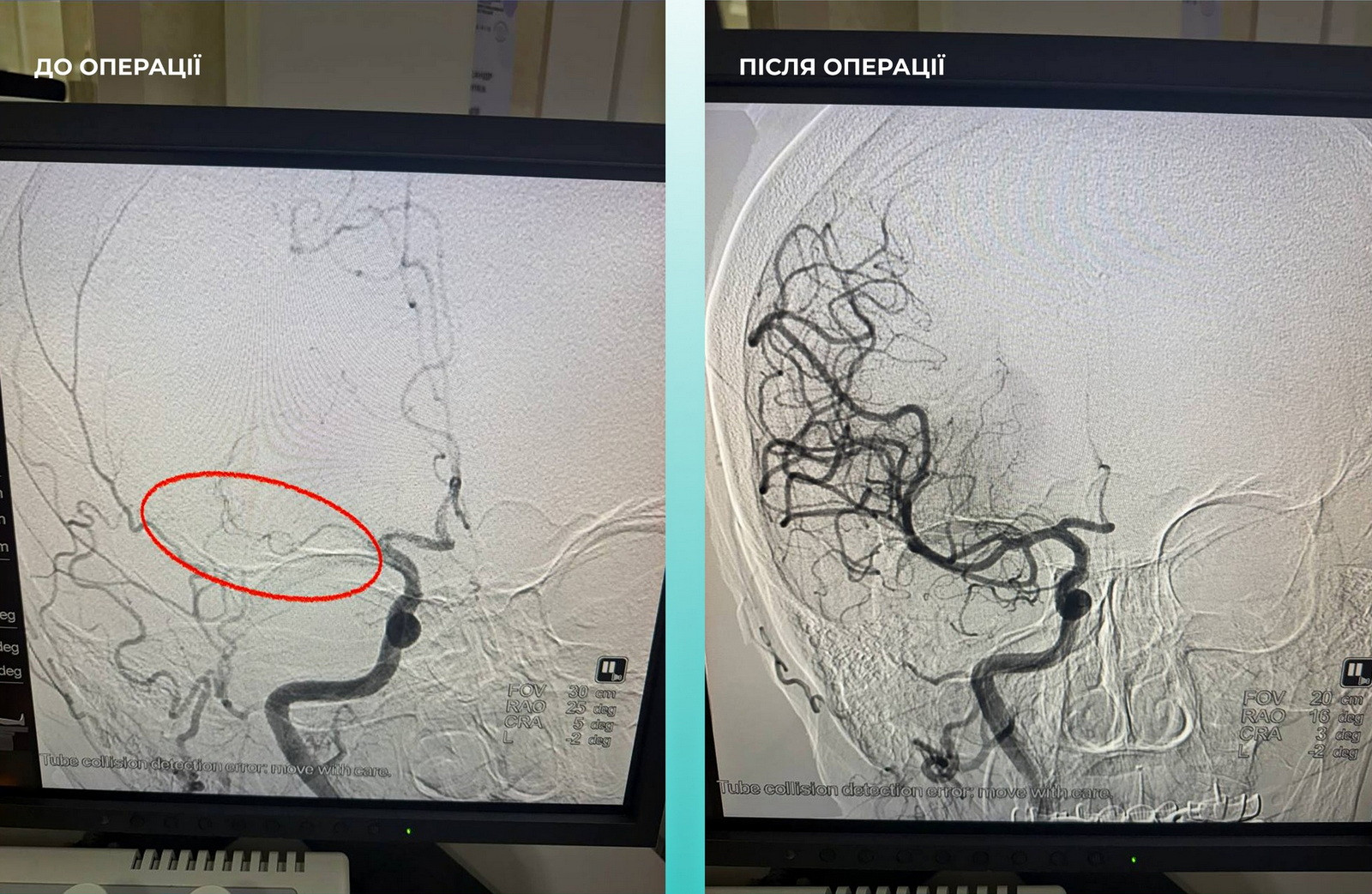 Мультидисциплінарна команда лікарів ухвалила рішення провести одночасну тромбоектомію з мозкової та легеневої артерій. Операція пройшла успішно, наразі пацієнтка почувається значно краще, вона перебуває при свідомості та вже рухає кінцівками.
