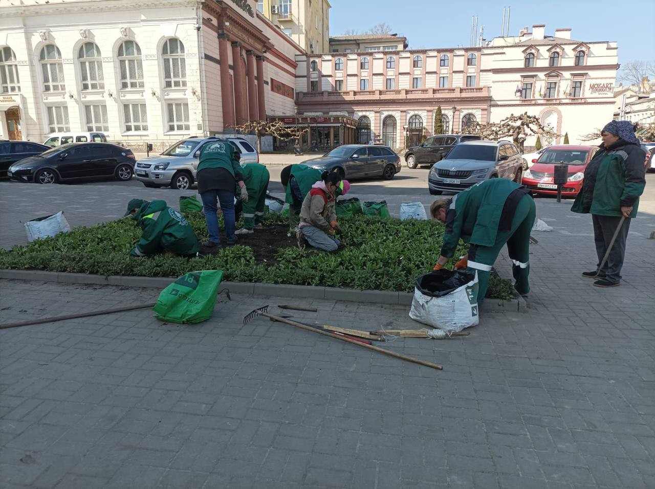 Окремо в місті тривають роботи з висадження весняних квітів. Віоли, маргаритки, селени та інші рослини висадили на Соборній площі та у квадратах біля Оперного театру.
