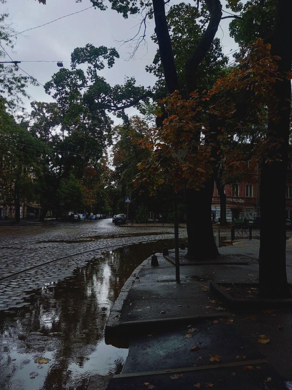 В Одесі відчувається прихід осені: дерева вкрилися першими жовтими листочками, а дощ додав місту особливого затишку.